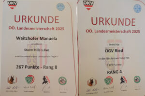 - Bericht über die Herbstprüfung beim ÖGV Ried/Eschlried15.11.2025 Unseren Herbstkurs haben wir heute mit der Prüfung beendet, gleich vorneweg, wir konnten die weiße Fahne hissen. Wir durften Renate Karlsböck als Richterin auf unserem Platz begrüßen. Renate ist … Weiterlesen: Bericht über die Herbstprüfung beim ÖGV Ried/Eschlried